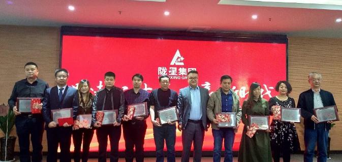 集團(tuán)總經(jīng)理吳茂原、副總經(jīng)理趙明珠、銷售總經(jīng)理李軍、管理部部長胡濤、財務(wù)部長彭宏娟等集團(tuán)領(lǐng)導(dǎo)分別為銷售業(yè)績突出的41家經(jīng)銷商頒發(fā)了“2017年度區(qū)域銷售金獎”、 “2017年度區(qū)域銷售精英獎”、“2017年度區(qū)域銷售優(yōu)秀獎”,對他們團(tuán)結(jié)拼搏,積極進(jìn)取、鍥而不舍的精神予以獎勵。臺上群英薈萃,臺下掌聲雷動,他們就是隴星人的的熠熠星光。