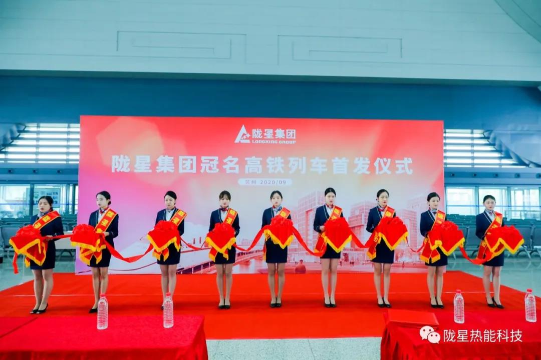 在首發(fā)儀式工作人員的引導(dǎo)下,出席隴星集團高鐵冠名首發(fā)儀式的領(lǐng)導(dǎo)及嘉賓來到了隴星集團高鐵冠名列車所在的站臺。主持人邀請隴星集團副總、隴星熱能科技公司總經(jīng)理趙明珠先生與華鐵傳媒集團副總裁杜勁松先生,以及隴星熱能科技公司三位員工代表共同為隴星集團的高鐵冠名列車揭幕,現(xiàn)場響起了熱烈的掌聲,站臺上來來往往的乘客也駐足觀看,高鐵列車上紅色的隴星集團LOGO及隴星企業(yè)精神八個大字格外引人注目。
